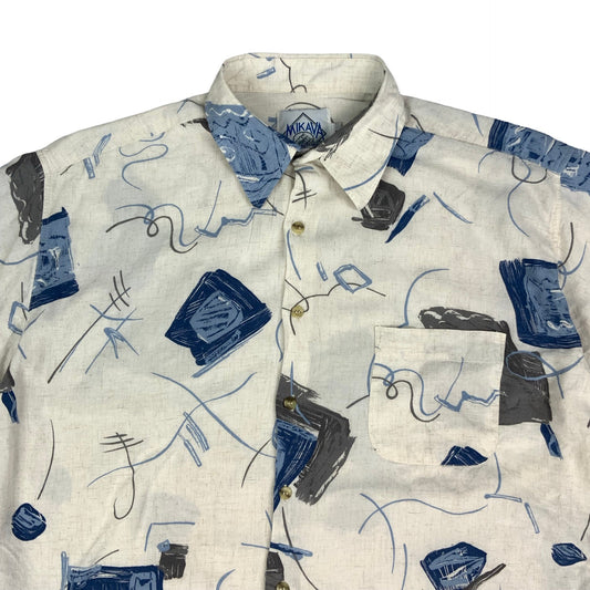 Vintage Pale Yellow Red Blue Green Abstract Print Shirt L