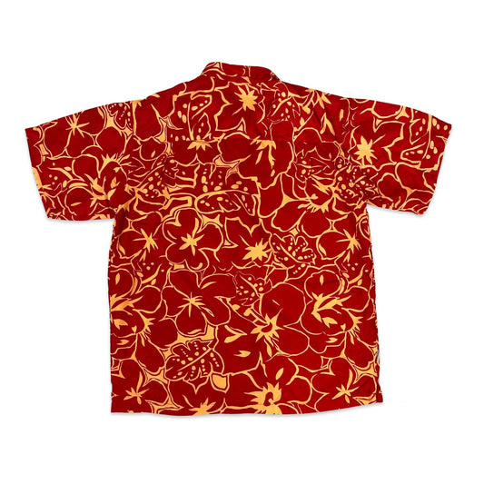 Vintage Y2K Red and Orange Hawaiian Floral Print Shirt XL XXL