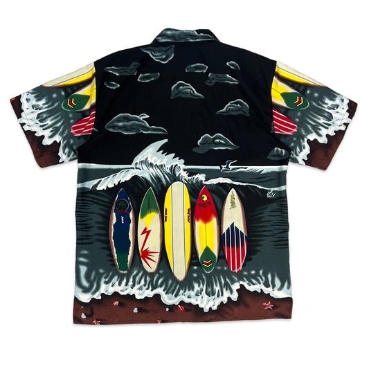 Vintage Surfboard Print Hawaiian Shirt L XL