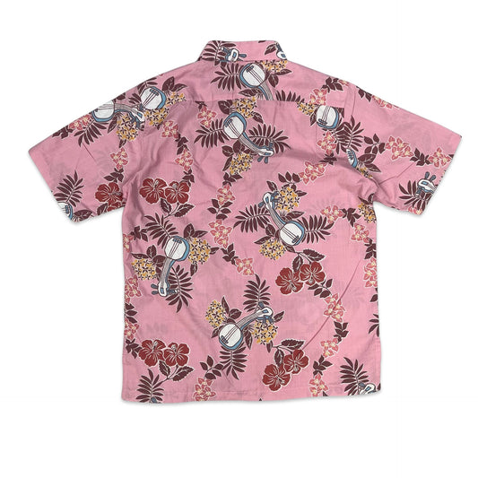 Vintage Pink Floral Print Hawaiian Shirt S M