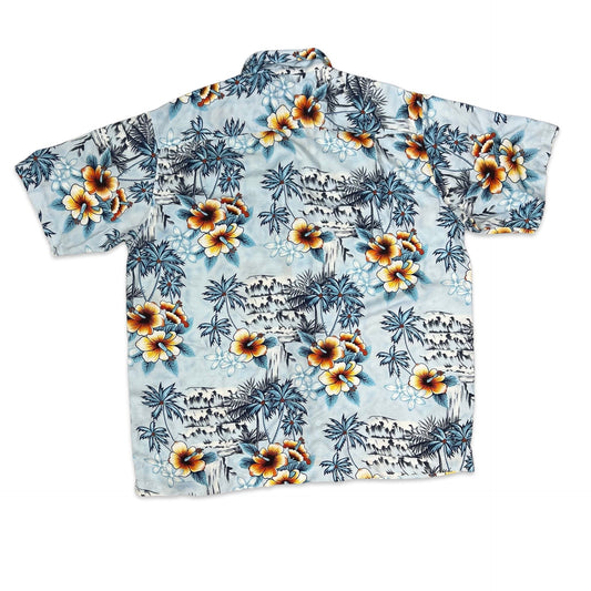 Vintage Blue Floral Hawaiian Shirt XXL 3XL