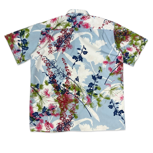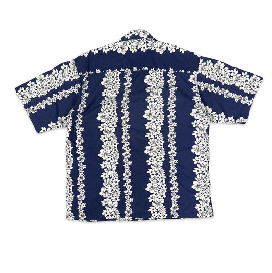 Vintage Blue & White Floral Print Hawaiian Shirt M L