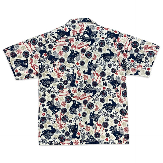 Vintage White Red & Navy Abstract Dragon Print Shirt S M