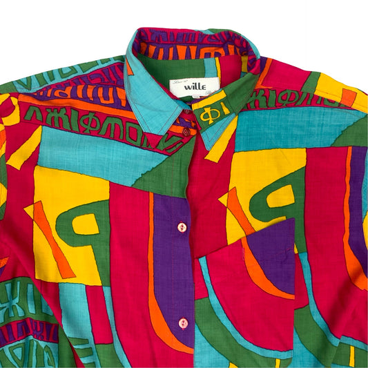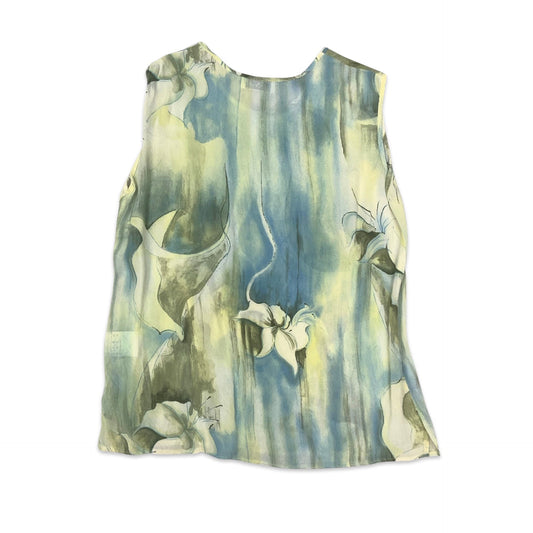 Vintage Pastel Blue & Green Floral Mesh Top 12 14