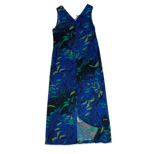 Y2K Blue Botanical Print Sleeveless Maxi Dress 12