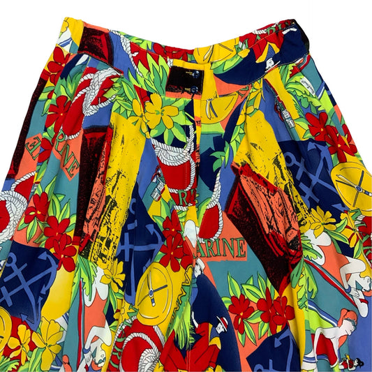 80s Multicoloured Beach Floral Print Midi Skirt 16
