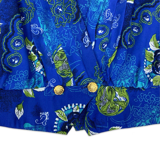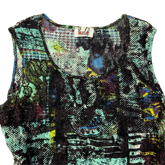 Vintage Black & Teal Floral Mesh Crop Top 10 12