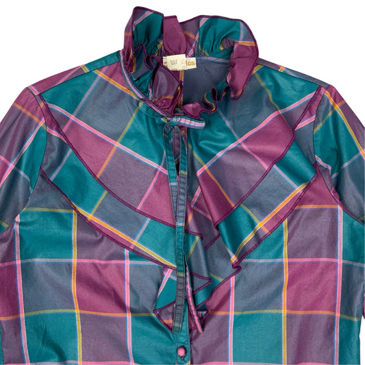 Vintage Purple & Teal Check Shirt with Frilly Collar 12