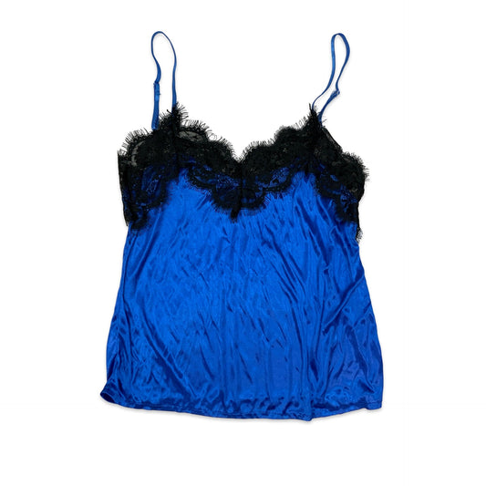 Y2K Blue Spaghetti Strap Top with Black Lace 6 8