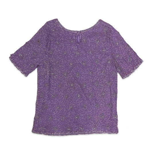 80s Lilac Floral Beaded Blouse 16