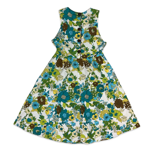 Vintage White Blue Green Floral Midi Dress 10