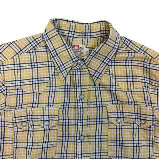 90s Levi’s Western Wear Yellow Black Plaid Flannel Shirt 12 14 16