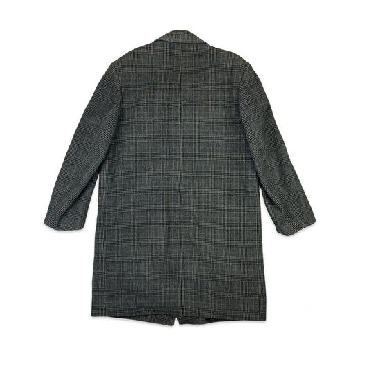 Vintage 80s Grey Checked Double Breasted Wool Coat Large