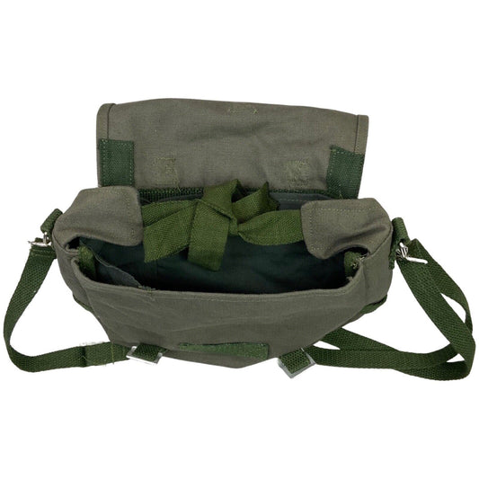 Vintage 90s 00s Dark Green Olive Mini Messenger Bag Cotton Canvas