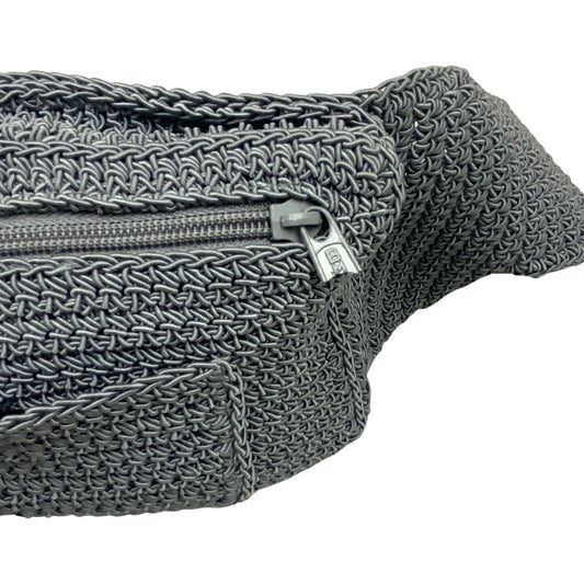 Vintage 90s 00s Grey Crochet Cross Body Bum Bag Cotton Blend