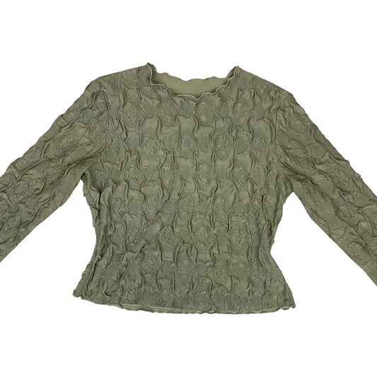 Vintage Y2K Khaki Green Popcorn Style Long Sleeve Lettuce Hem Top 10 12 S M