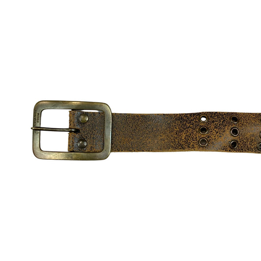 Vintage Y2K Brown Black Speckle Coated Leather Suede Triple Eyelet Belt M L