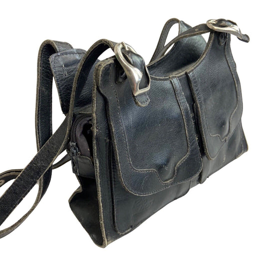 Vintage 90s 00s Y2K Black Leather Rio Bag Shoulder Bag