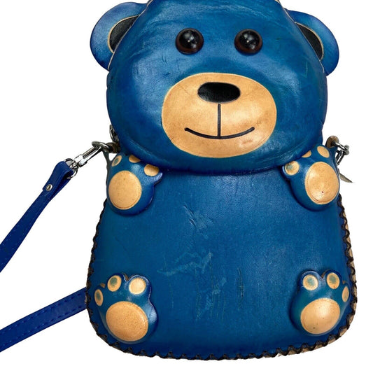Vintage 90s 00s Blue Bear Novelty Leather Cross Body Bag