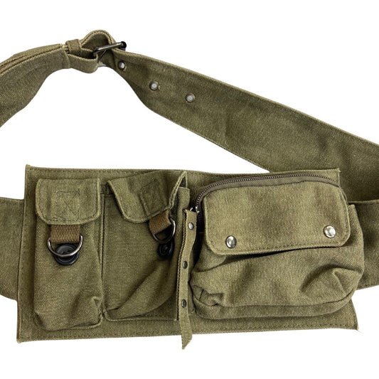 Vintage 90s 00s Khaki Cotton Duck Canvas Utility Bag Belt Strapped 41"