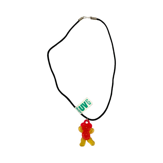 Vintage Deadstock 90s Y2K UV Glow in The Dark Rave Cyber Red Teddy Bear Necklace