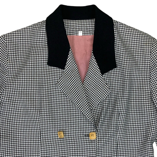 Vintage 70s 80s Double Breasted Gold Button Black White Check Houndstooth Blazer Jacket S 12 14