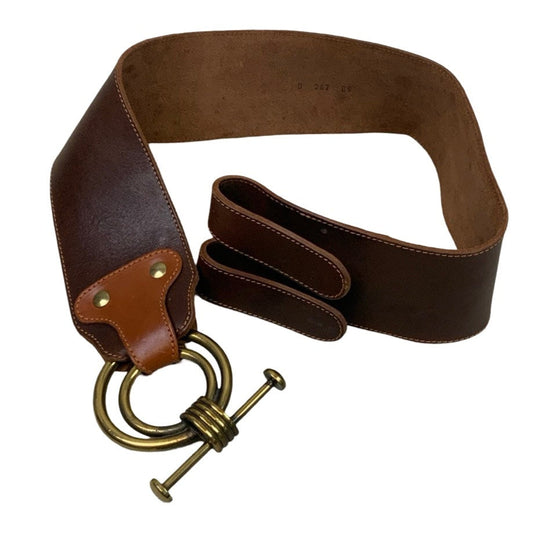 Vintage 80s 90s Brown (267) Leather Unique Double D-ring Buckle Belt