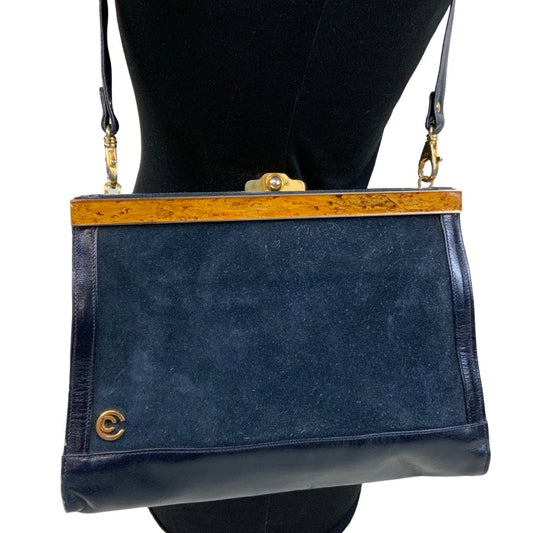 Vintage ‘Doppio C Firenze’ Blue Suede Leather Kiss Closure Handbag Purse
