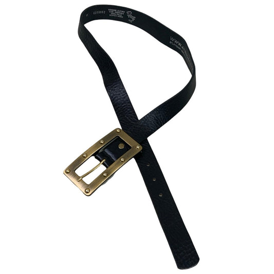 Vintage 90s ‘Atrium’ Black (631) Leather Thin Square Gold Studded Buckle Belt
