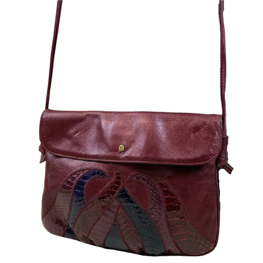 Vintage 90s does 70s Burgundy Black Snakeskin Shoulder Patchwork Purse Shoulder