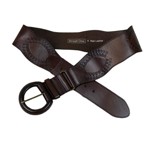 Vintage 90s 00s Y2k ‘Street One’ Brown Leather Oval Patterned Buckle Belt