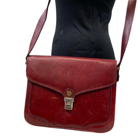 Vintage 80s 90s Red Twist Lock Leather Crossbody Shoulder Handbag