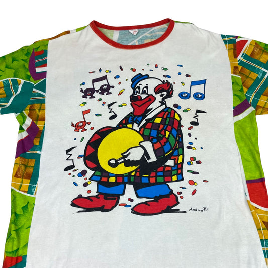 Vintage 80s White Multicoloured Geometric Patterned Clown Graphic T-Shirt L