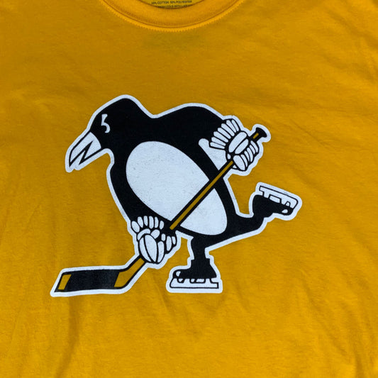 Y2K Yellow & Black Pittsburgh Penguins NHL Ice Hockey Graphic Printed T-Shirt XL