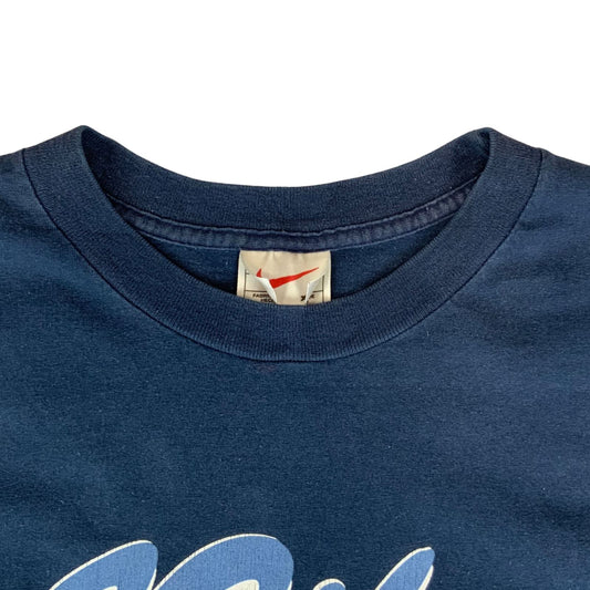 Vintage 00s Y2K Navy Blue Nike Script Spell-Out Graphic T-Shirt XXL