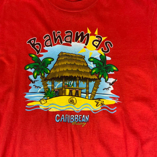 Vintage 90s Red Bahamas Caribbean Cruising Destination Tourist Graphic T-Shirt L