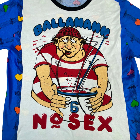 Vintage 80s White Multicoloured Geometric Patterned Clown Graphic T-Shirt XXL