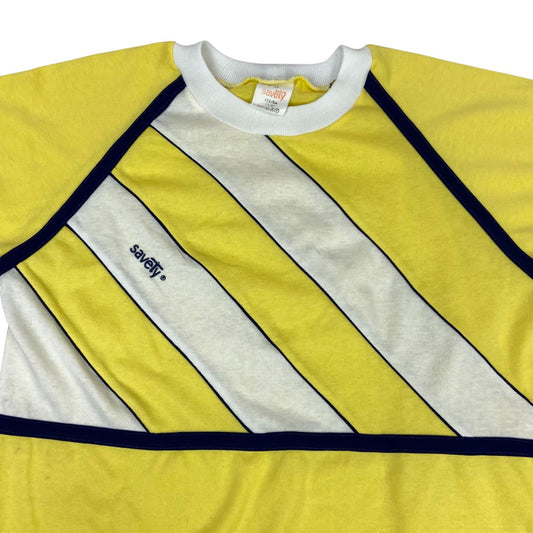 Vintage 70s 80s Yellow Navy and White Savety Stripped Panelled T-Shirt M