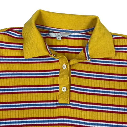 Vintage 90s Yellow Clockhouse Ribbed Stripped Button Up Polo Shirt Top S 8/10