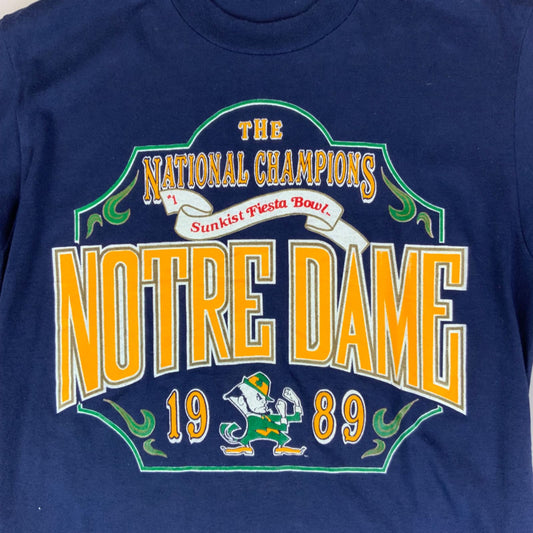 Vintage 1989 Navy Notre Dame Fighting Irish Football Sunkist Fiesta Bowl Tee M