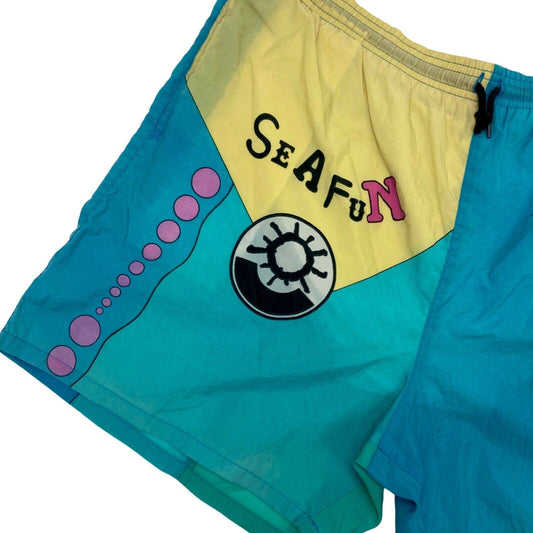 Vintage 80s 90s Blue Yellow Pink Graphic Print Shorts L