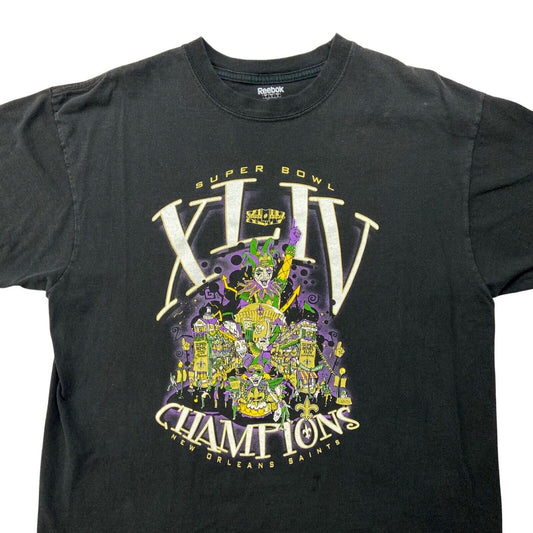 2010 Black Reebok New Orleans Saints 44th Super Bowl Champions T Shirt L
