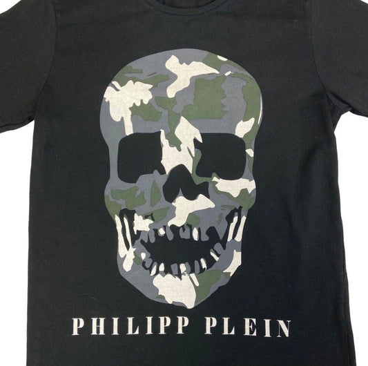 Vintage 90s 00s Black Philipp Plein Camouflage Skull T-shirt M