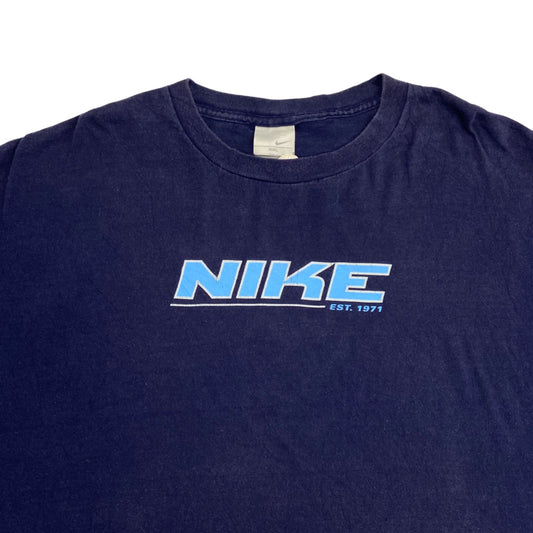 Vintage 90s Blue Nike Spell Out Logo T-shirt XL