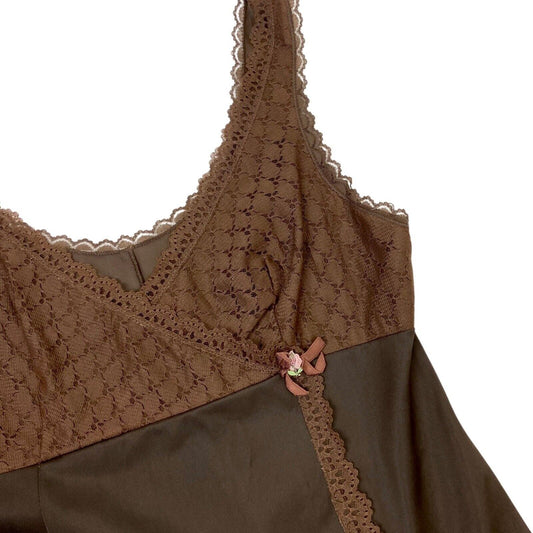 Vintage 90s Brown Sheer Lace Slip Dress S