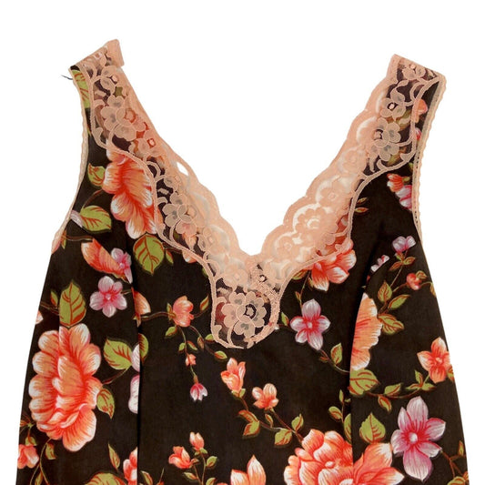 Vintage 90s Brown Pink Floral Lace Slip Dress 8 10 S