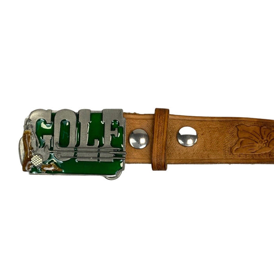 Vintage 1995 Brown Stamped Green Golf Siskiyou Buckle Personalised Belt 44" M/L