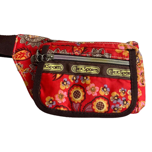 Vintage 90s 00s Red Brown Floral Paisley EKSports Cross Body Bum Bag
