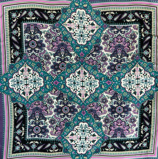VTG 90s 00s y2k PURPLE TEAL GREEN INTRICATE PAISLEY FLORAL SQUARE SCARF