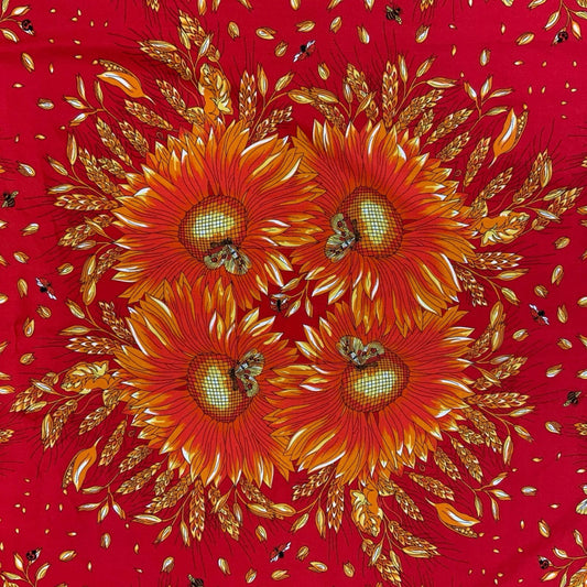 VTG RED YELLOW FLORAL LADY BUG BEE BUTTERFLY INTRICATE DECORATIVE SQUARE SCARF